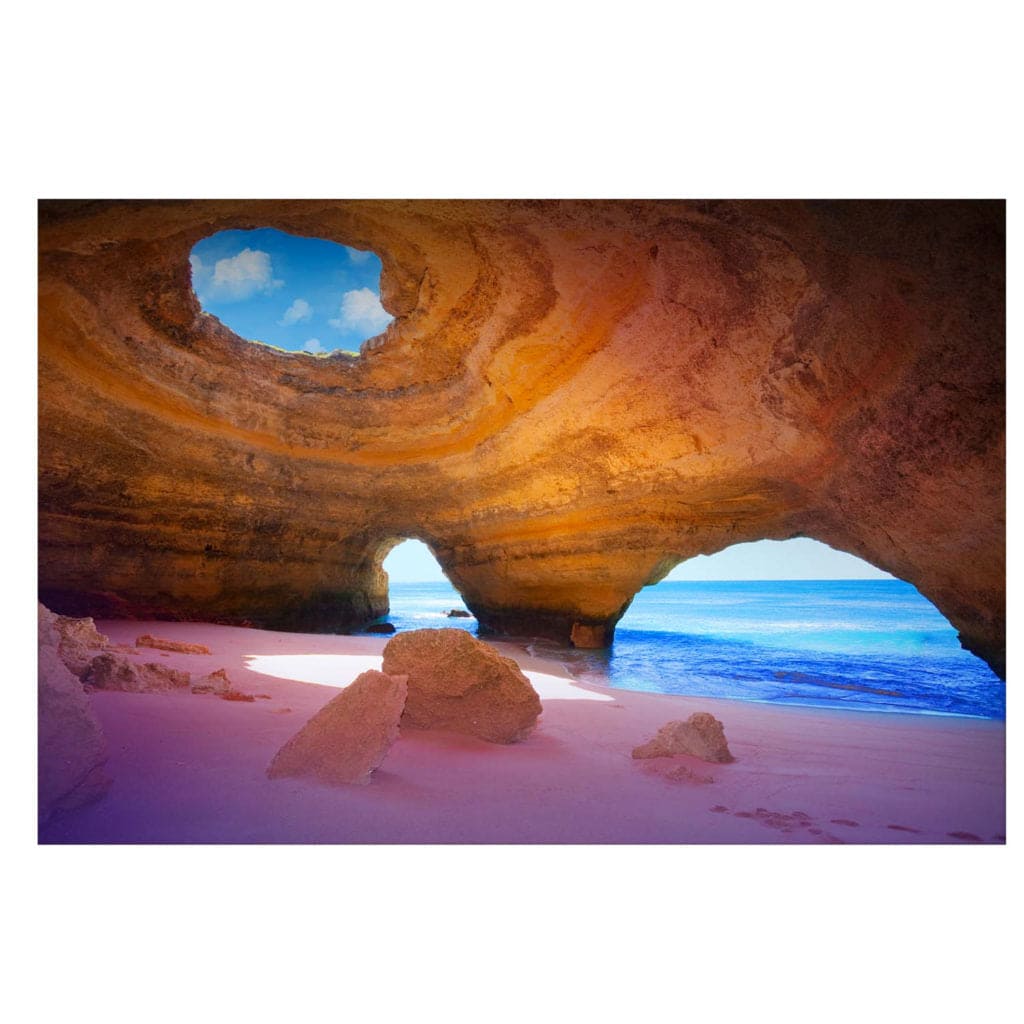 MEASURES: 47″x32″ BENAGIL SEA CAVE This beautiful art is printed with an image of Benagil Cave in Algarve, Portugal. This is a remarkable natural seaside cave, reachable by boat trip, known for a distinctive hole in its roof. Every wall Art is hand-crafted in the USA, made on-demand.