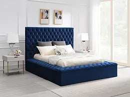 Extend elegance to the bedroom with this Blizz velvet bed. This bed has a rich look, with deeply tufted upholstery along its upper platform perimeter and headboard, ensuring that it is a good fit in modern bedroom themes. Storage rails and footboard are included to ensure maximum versatility.