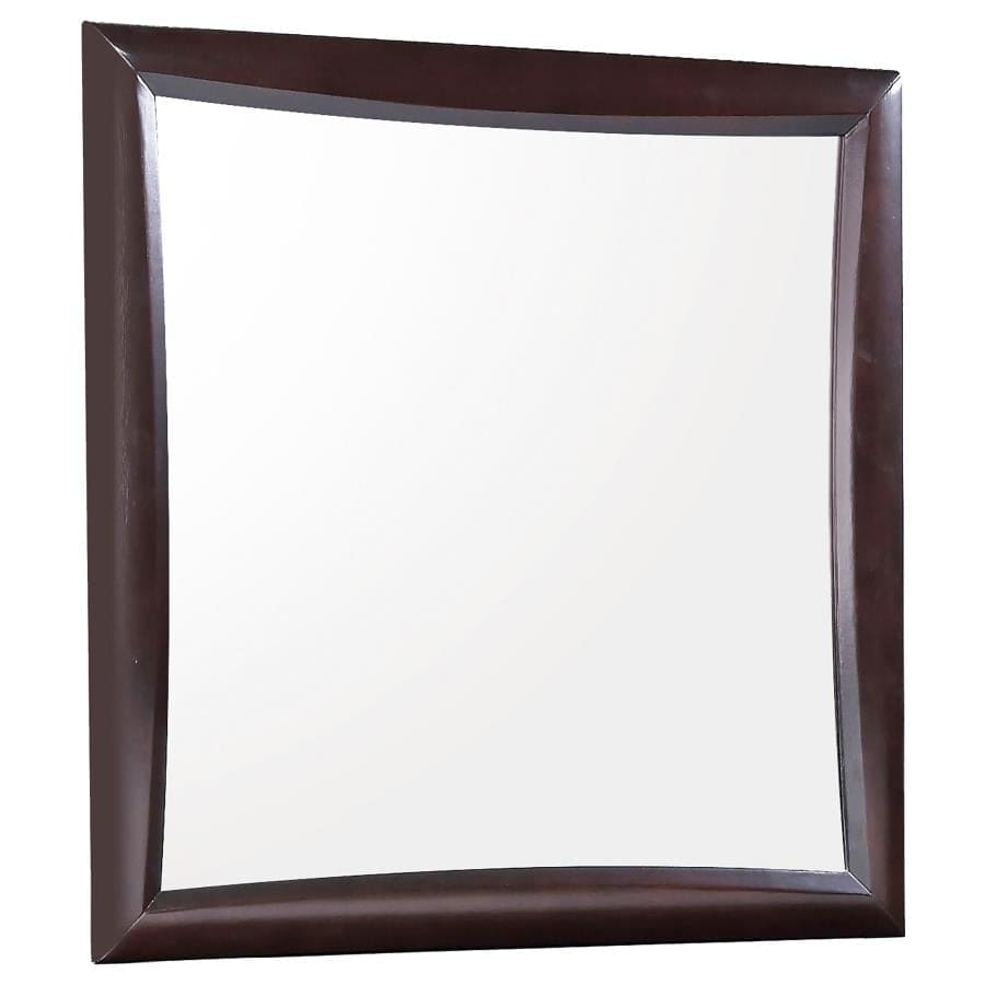 | A showcase of the Phoenix collection is this transitional 5-piece bedroom set with a convenient design and sturdy construction. The set features an storage bed fashioned with drawers and open shelving built into its high bookcase headboard and drawers on each side of the bed and the footboard. The nightstand and chest have numerous roomy drawers for even more storage of all your valuables. A broad, sturdy dresser with clean lines and nine drawers and a matching square mirror rounds out this smooth-looking set. The collection is constructed of solid wood and maple veneer with a warm cappuccino finish that matches any home decor. |