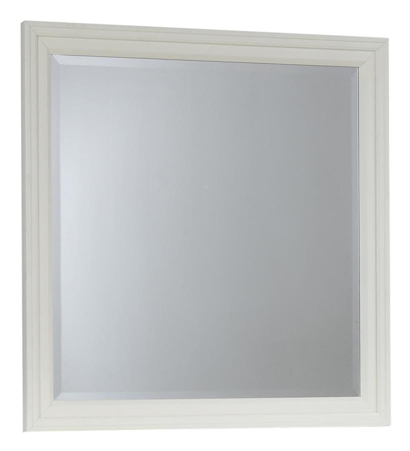 | The Sandy Beach collection presents this coastal style 5-piece bedroom set that offers an enduring appeal. The headboard and footboard of the bed have detailed carved panels for a touch of classic distinction. The three-drawer nightstand has a handy pull-out service tray, while the ten-drawer dresser includes two doors that open up to six of the and room on its broad top to easily accommodate the square mirror. The chest features six deep drawers for additional storage space. The entire set is fashioned from maple veneers with a stunning buttermilk finish (classic black finish is also available) |