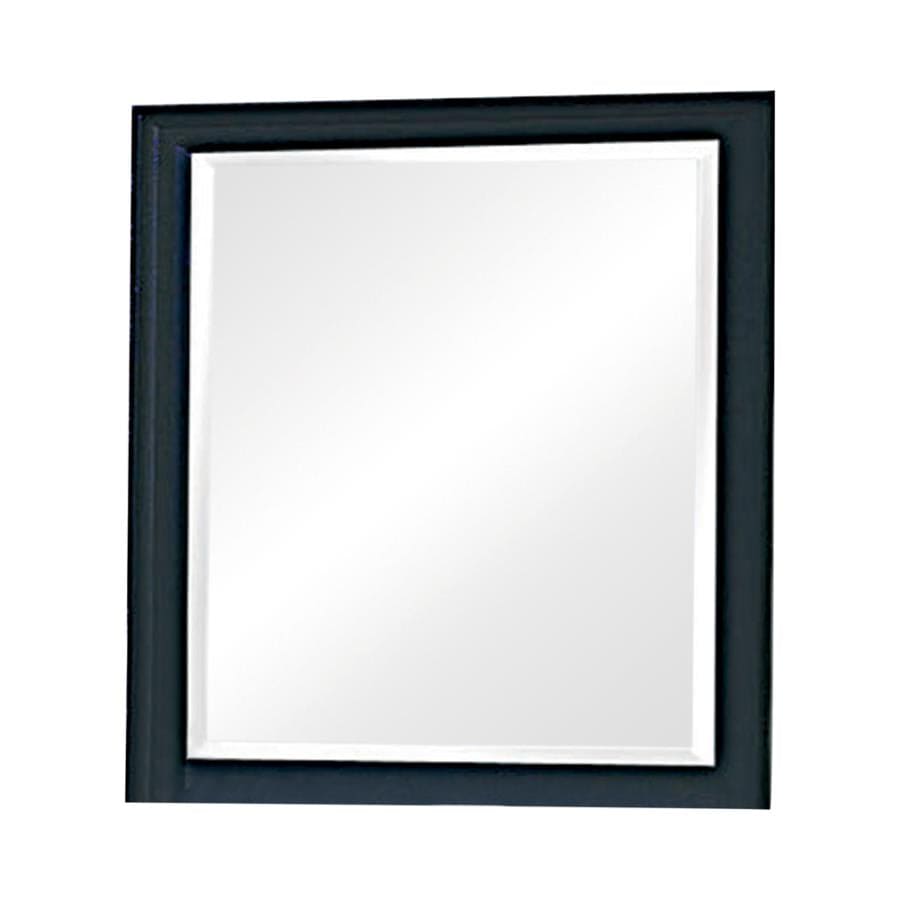 | The Sandy Beach collection presents this coastal style 5-piece bedroom set that offers an enduring appeal. The headboard and footboard of the bed have detailed carved panels for a touch of classic distinction. The three-drawer nightstand has a handy pull-out service tray, while the ten-drawer dresser includes two doors that open up to six of the and room on its broad top to easily accommodate the square mirror. The chest features six deep drawers for additional storage space. The entire set is fashioned from maple veneers with a stunning black finish (a classic buttermilk finish is available as well). |
