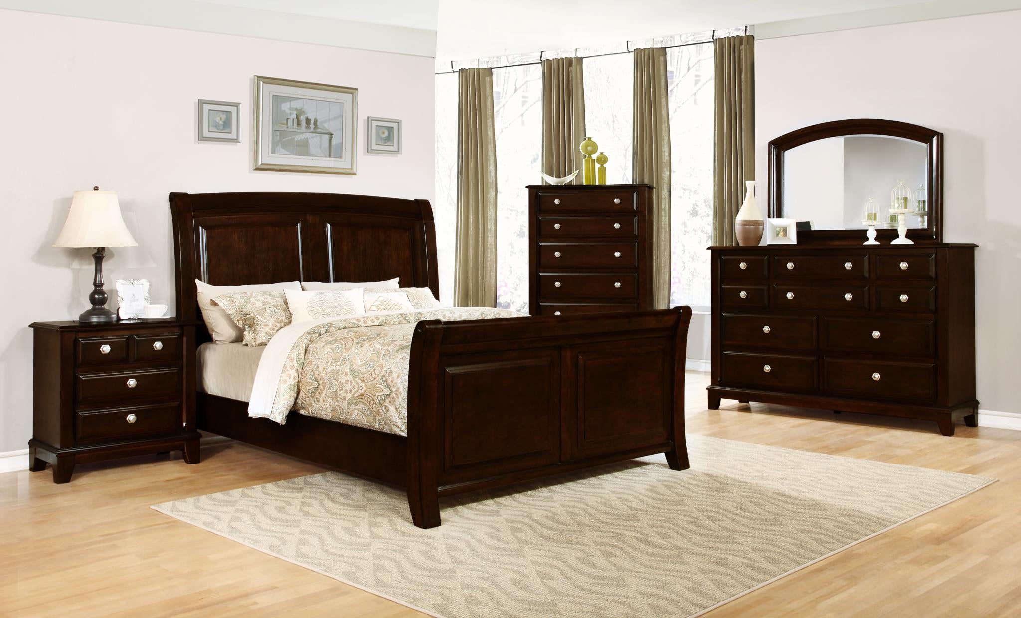 Selling Description: Enhance the elegance of your bedroom with this stunning Traditional 5-Piece Sleigh Bedroom Set. This set includes a beautifully crafted sleigh bed, a spacious dresser with a mirror, a chest of drawers, and a nightstand, all finished in a rich, dark wood tone. The timeless design and superior craftsmanship make this set a perfect addition to any classic or traditional decor.