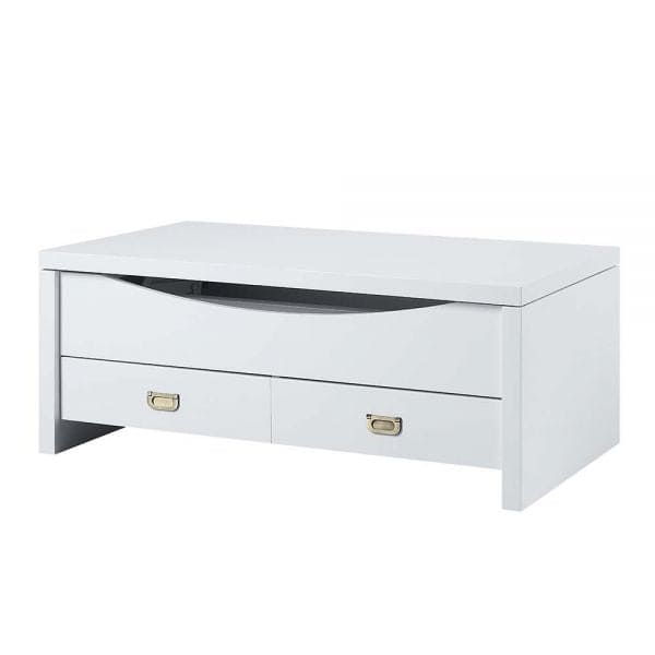 KD Rectangular Coffee Table Lift Top Table Top Thickness: 36 mm High Gloss Finish 2/3 Extension Drawer Glide Side Metal Drawer Glide Lift Top: 27"-17"H