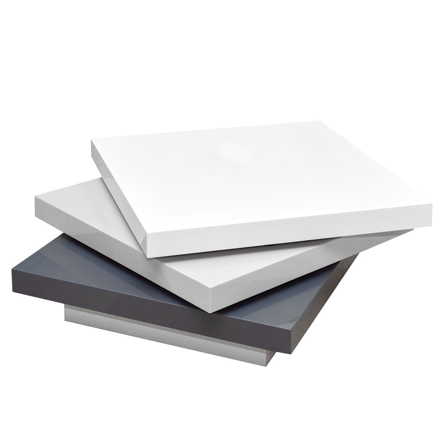 This eye-catching coffee table might just steal the show! As an art piece, this sleek coffee table brings a splash of contemporary style as it adds functionality to your living room.This distinctive design, showcases a stack of three blocks in bright white, coconut white, and anchor gray hues that create a layered look, while two adjustable levers let you swivel these sections 360 degrees for a fanned effect.Keep it centered atop a lush shag rug for a fantastic focal point, pull up a few tufted leather sofas for a stunning spot to gather with guests, and finally tie the living room look together with a polished pendant hanging overhead.