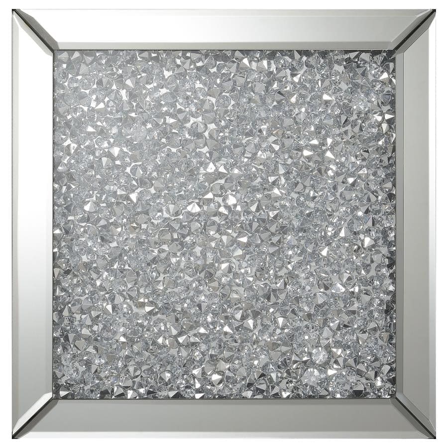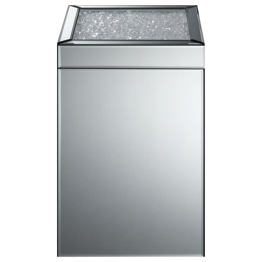 | * Accent table showcases modern luxury * Clear mirror finish adds visual interest * Crystals adorn table top for unique feature |