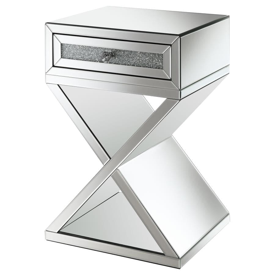 | * Convenient storage drawer with full extension glides * Crystal knob drawer pull * Constructed with MDF and mirror |