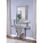 KD, Rectangular Console Table NO Storage CONSTRUCTION Mirrored Top (NO Apron) Mirrored Pedestal Base (Triangular Shape): Faux Diamonds Inlay & 4mm Clear Tempered Glass w/Beveled Edge, MDF