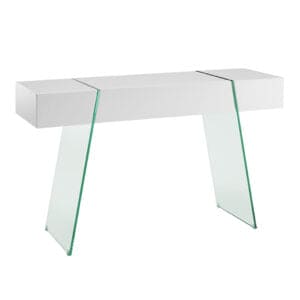 White Gloss with Glass legs 47″ X 16” X 29”