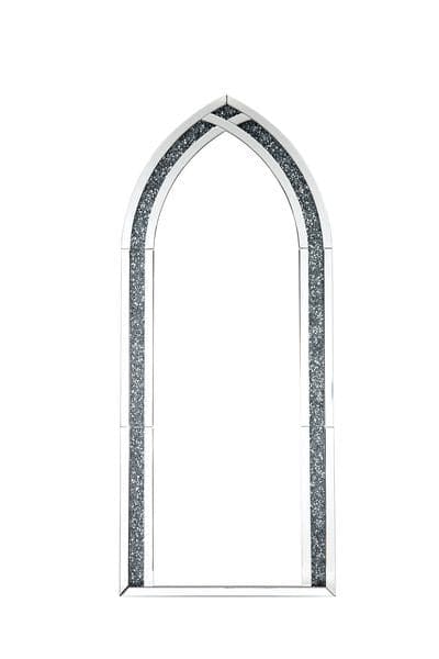 Accent Floor Mirror LED Touch Light Included Beveled Mirrored Frame Faux Diamonds Inlay & Clear Tempered Glass