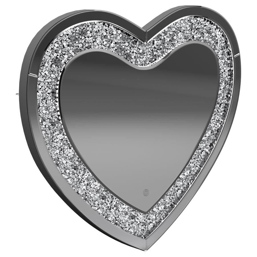 * Contemporary chic wall mirror * Heart-shaped * Silver finish |