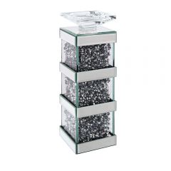 Candleholder Features: Beveled Mirrored Finish w/Faux Diamonds Inlay, 4mm Clear Tempered Glass Frame: Mirror, Glass, MDF, Acrylic Inlay Q&A] Candle NOT Included