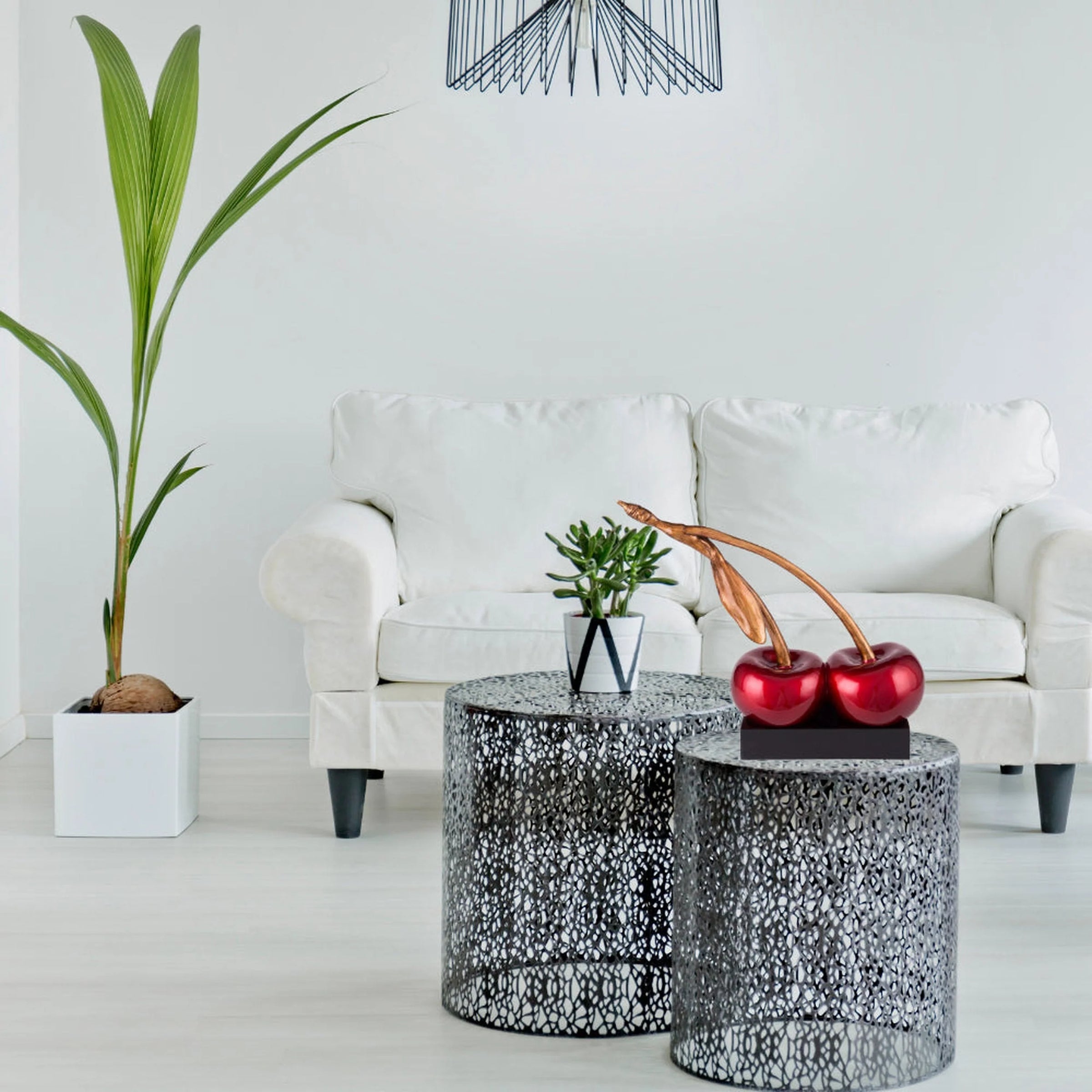 The Ripe Double Cherry Sculpture is a stunning sculpture of two red cherries connected by the stem. This makes it a perfect statement piece for the fruit lover and display this artistic cherry tabletop sculpture in your living room, dining table or kitchen counter. A lovely accessory that will be sure to be the cherry on top!