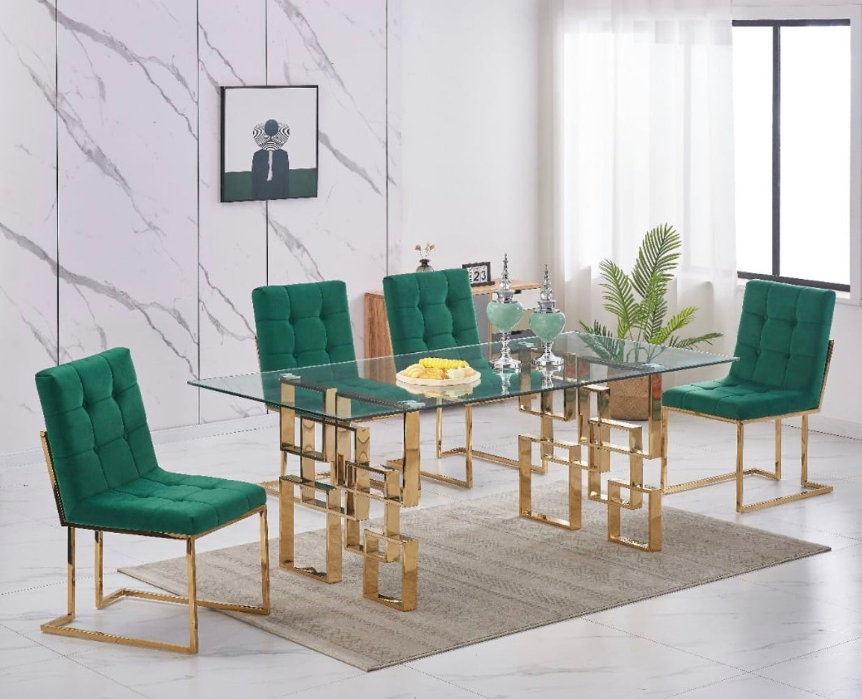 1 BOX 2 CHAIRS GREEN  AND GOLD STAINLESS STEEL CHAIRS