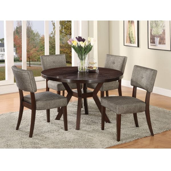 The Drake Dining Table is perfect in a small dining room, family room, or upscale breakfast nook. This dining table measures 48 inches around, which allows you to seat four guests comfortably. It's well-crafted of Rubberwood, oak veneers, and engineered wood bathed in a deep espresso finish that works with any interior design. The angled pedestal base supports a square shelf that you can leave open or use as for display.