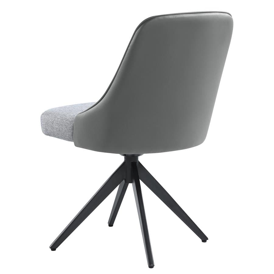 * Ultra-modern rectangular dining table with white ceramic top and detailed geometric iron base for an impressive look * Six swiveling side chairs with dual tones of gray and light gray, set atop geometric-style metal legs and upholstered with fabric and leatherette over foam padding for a comfortable seating experience * Spacious and glamorous seven-piece dining set perfect for modern everyday living space * Radiant look of glossy charm and contemporary versatility * Captivating design with superb comfort |