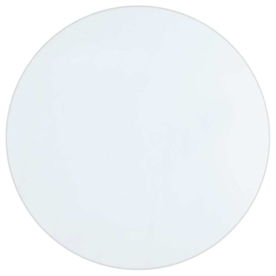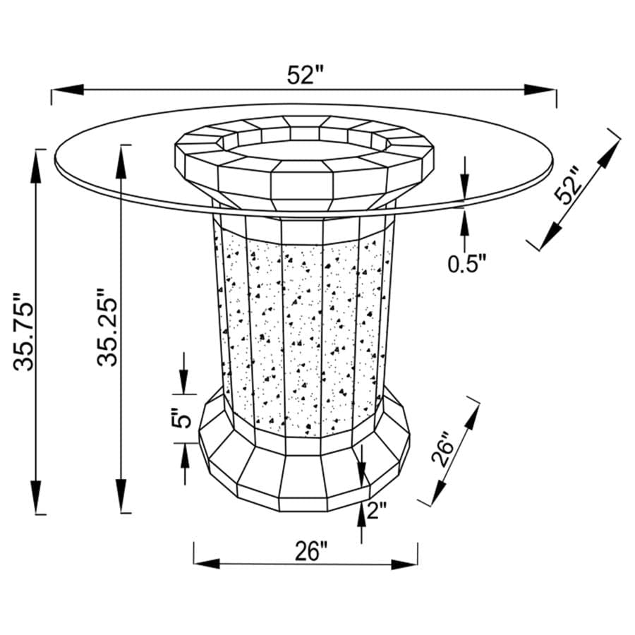 * Round clear glass tabletop and column-like pedestal base offers an open, airy feel