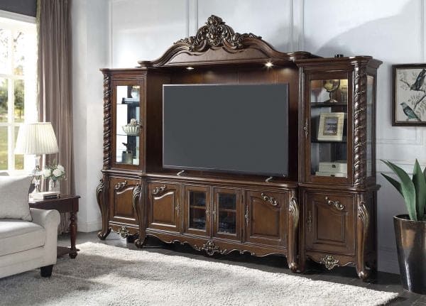 If your TV is your most prized possession, the Devayne entertainment center is the perfect place to showcase it. Thanks to the natural beauty, strength, and quality. This design will be a sophisticated, sturdy addition to your living room. A timeless, versatile antique oak finish highlights the woods authentic characteristics and enriches the molding and panel details. Featuring shelves, closed storage, and cord management to help keep a tidy living space. The bridge that brings it all together harmoniously.