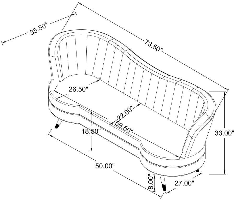 Inspired by a glam version of mid-century artistry, this three-piece sofa set offers all that’s needed to begin a romantic living space motif. Give a living room or family room its best design life with this set built with frames fully encased in solid wood and covered in decadent gray velvet. Vertical channeling on back interiors highlights the iconic kidney shape of its sofa and loveseat and add dimensionality to an extra comfy accent chair. Set atop slender, tapered legs fashioned of gold finish stainless steel, each piece reflects the parlor look of upscale retro furnishings. Set includes one sofa, one loveseat, and one chair.