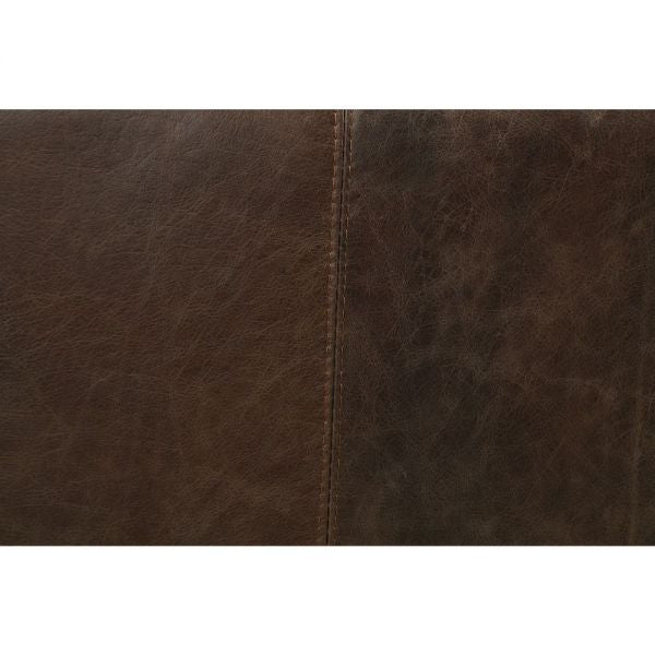 Contemporary styling is exemplified in the design of the Porchester collection. Offered in distress chocolate top grain leather coverings, the cleanly designed seating group will fit perfectly in your modern home. Metal legs support and provide decorative accent that is in line with the sleek look of the collection.