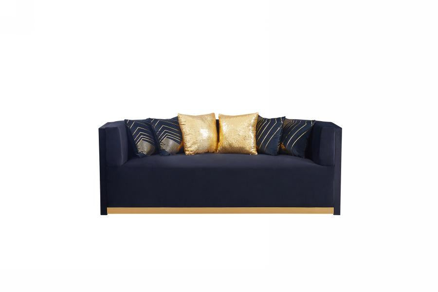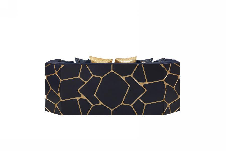 This beautiful living room set gives your home a lot of luxury with its velvet and gold finish, elevating your living room to the heights of style.