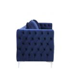 Elegant and eye-catching, the stunning Gillian sofa is the perfect addition to any space. Rich dark teal velvet covers the plush. The comfortable seat is padded with high-density foam and has modern tufted design on the back and sides. Strength and beauty is guaranteed with a wood frame and sliver stainless steel legs. Three pillows are included for extra support. The nailhead trim that outlines the front edge of this beautiful piece to add an extra element of elegance. Fully assembled.