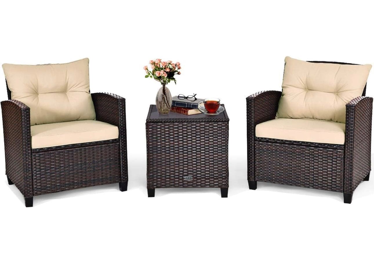 Made of all-weather hand-woven PE wicker, it can withstand all kinds of weather. Weather-resistant wicker and will not fade. In addition, our patio furniture set is very attractive and the style looks very minimalist and stylish