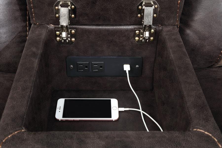 * Sofa features drop down table with pop-up power outlet (2AC/2USB), and two stainless steel cup holders