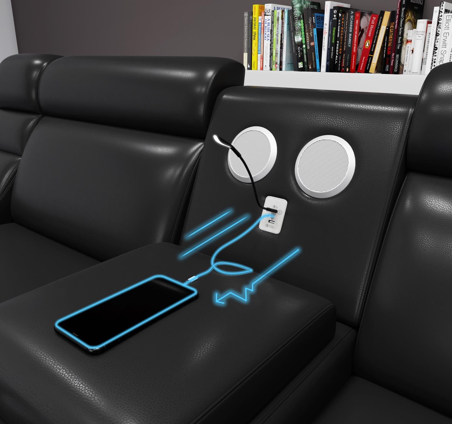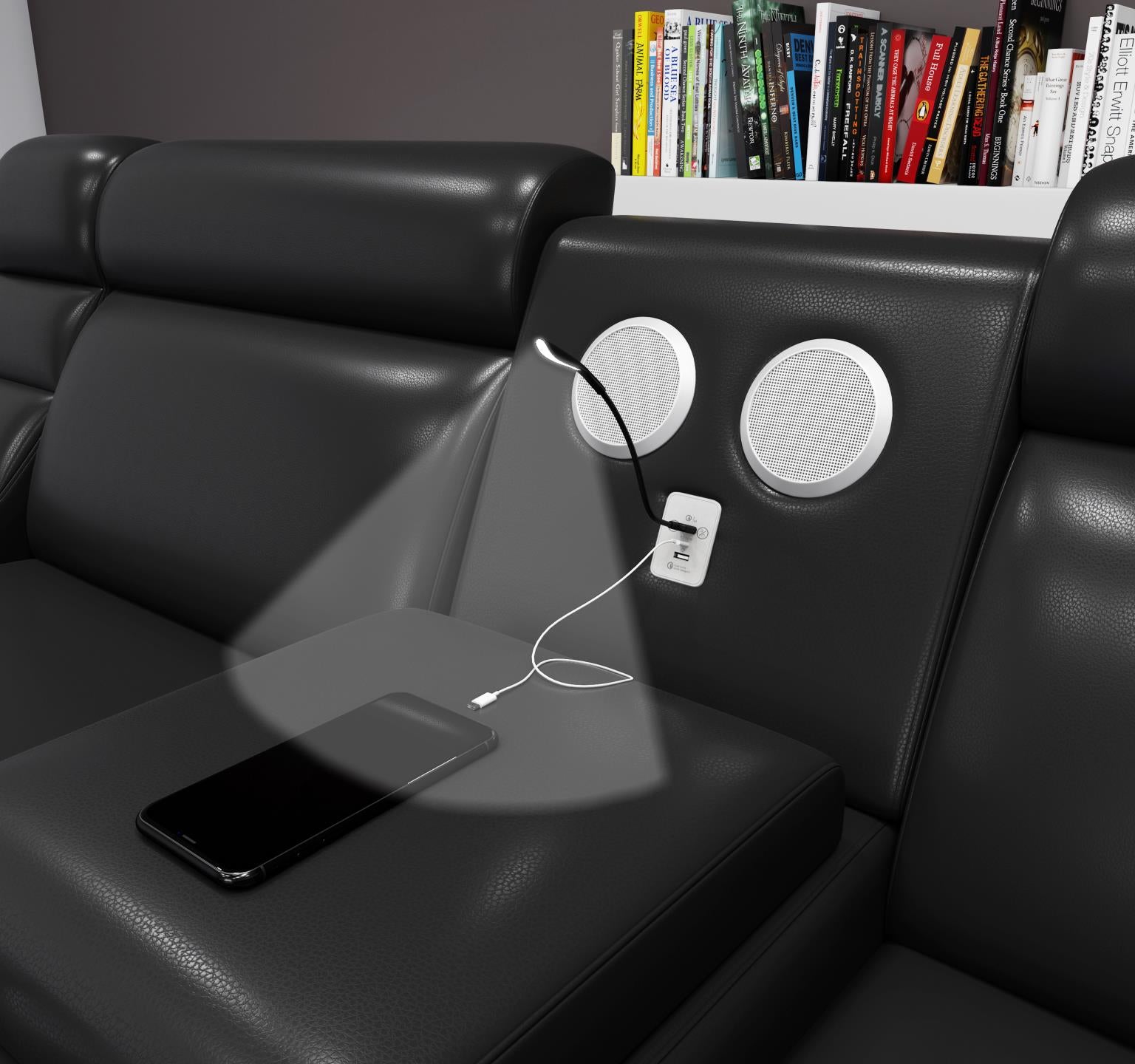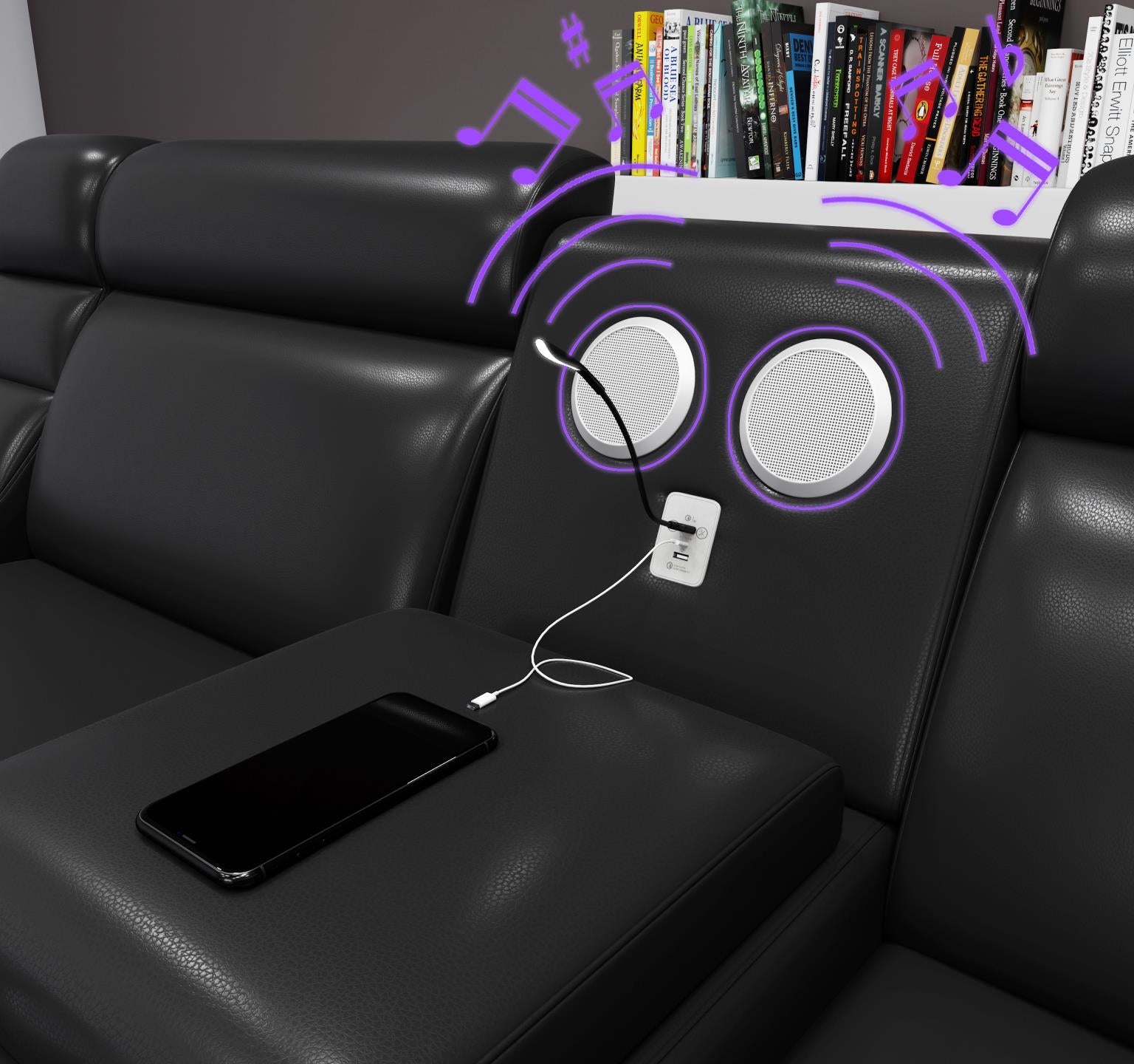 3 PC Sectional with Console, Bluetooth Speaker, Multi Color LED, USB Charger, Reading Light, Cup Holder