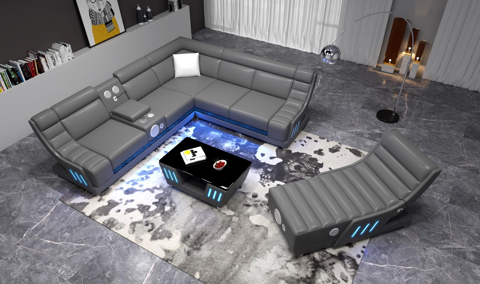 3 PC Sectional with Console, Bluetooth Speaker, Multi Color LED, USB Charger, Reading Light, Cup Holder